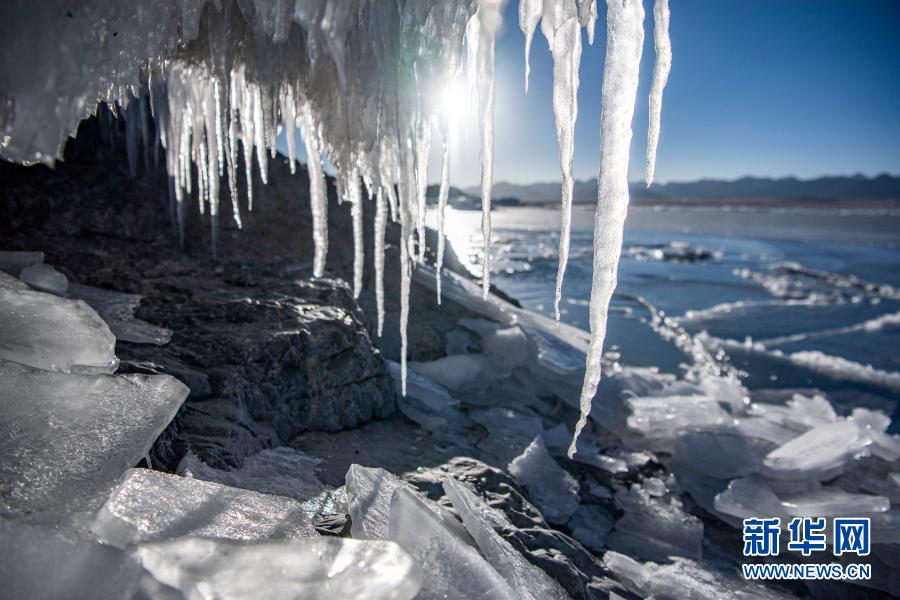 納木錯的冬景(1月29日攝)。 在冬日的藏北高原,素有“天湖”之稱的納木錯靜靜地依偎在雪山的懷抱中。 新華社記者 孫非 攝