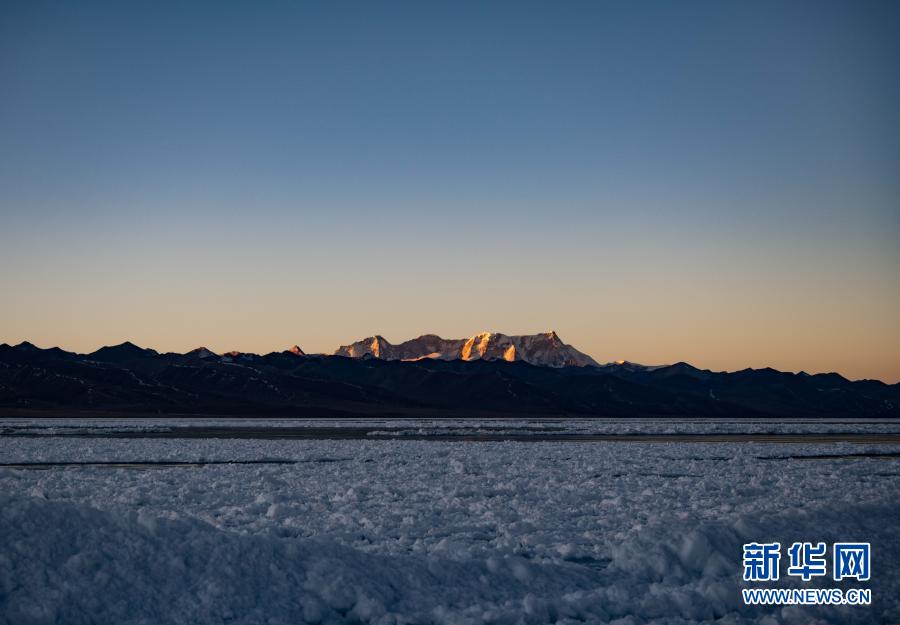 納木錯的清晨景色(1月29日攝)。 在冬日的藏北高原,素有“天湖”之稱的納木錯靜靜地依偎在雪山的懷抱中。 新華社記者 普布扎西 攝