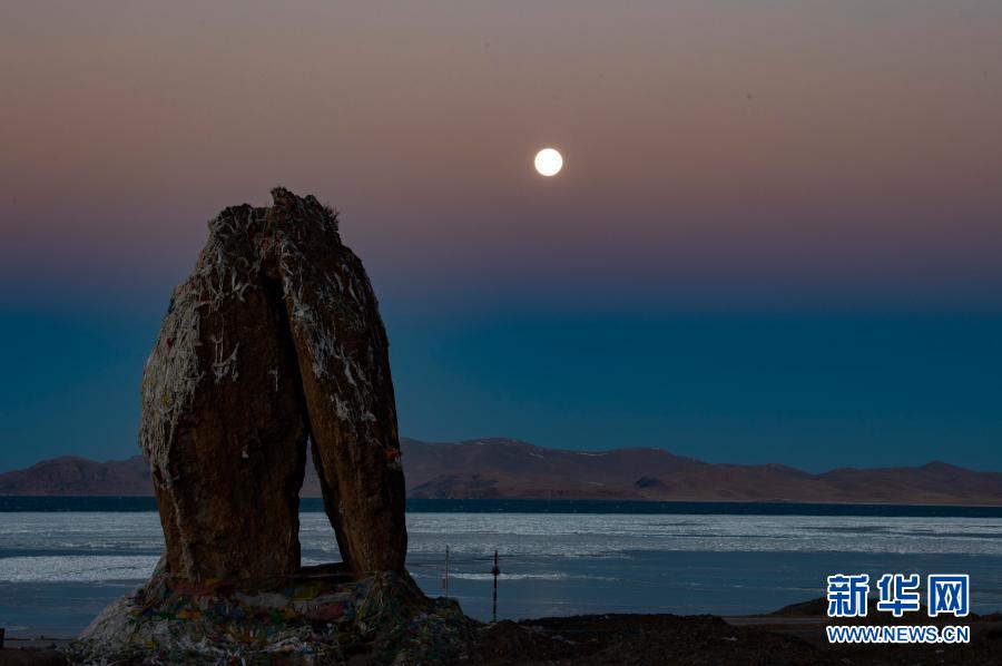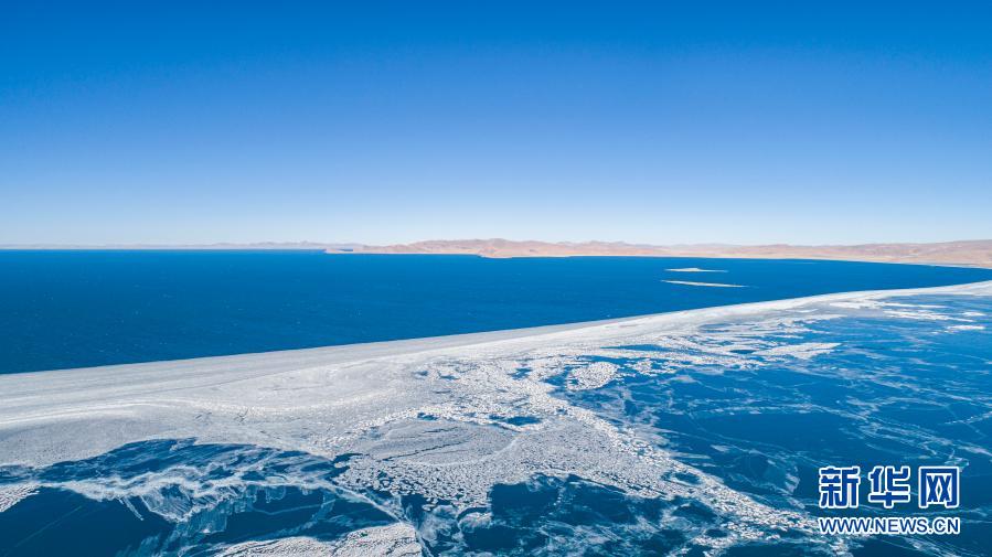湖面結冰的納木錯(1月29日攝)。 在冬日的藏北高原,素有“天湖”之稱的納木錯靜靜地依偎在雪山的懷抱中。 新華社記者 普布扎西 攝