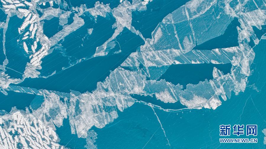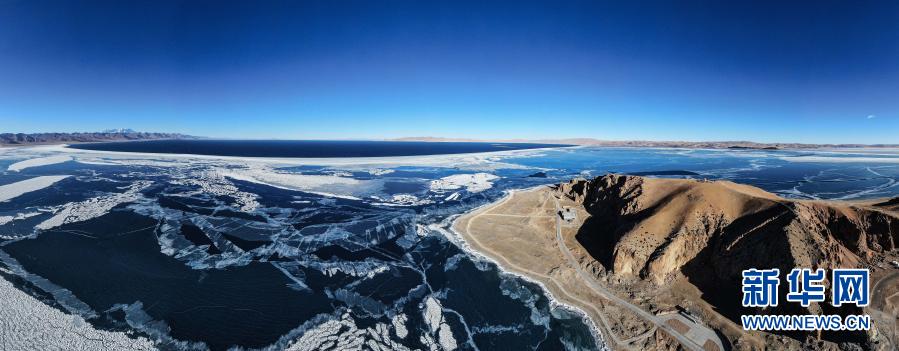 湖面結冰的納木錯(1月29日攝,無人機照片)。 在冬日的藏北高原,素有“天湖”之稱的納木錯靜靜地依偎在雪山的懷抱中。 新華社記者 晉美多吉 攝