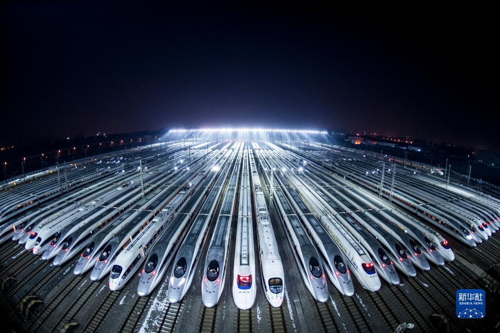 動車組停靠在武漢動車段的存車線上,準備進行檢修和保溫作業(2018年2月1日攝)。新華社記者 肖藝九 攝
