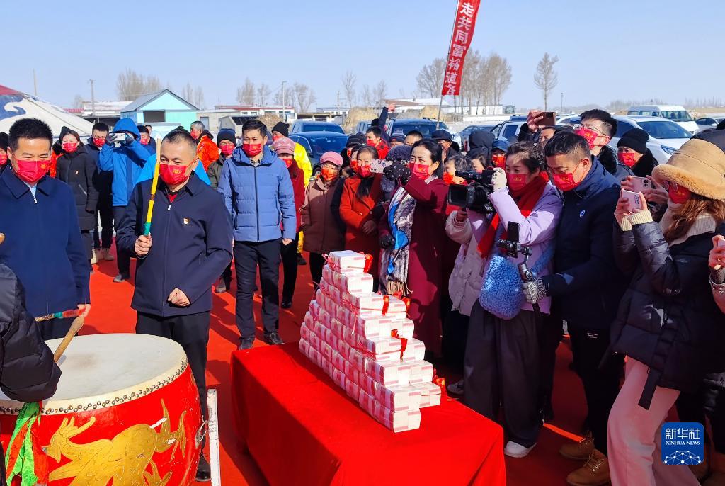 1月17日拍攝的內蒙古自治區鄂爾多斯市達拉特旗白泥井鎮侯家營子村官牛犋社分紅現場。 新華社記者 賈立君 攝
