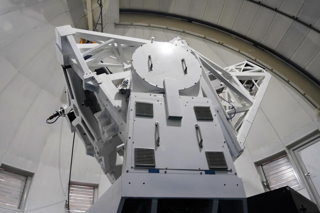 這是4月8日拍攝的AIMS主體結(jié)構(gòu)。(新華社記者陳杰 攝) “通過消除雜散光的光學(xué)設(shè)計(jì)和真空制冷等技術(shù),我們解決了該波段紅外太陽觀測(cè)面臨的環(huán)境背景噪聲高、探測(cè)器性能下降等難題。”中科院國(guó)家天文臺(tái)高級(jí)工程師馮志偉介紹,紅外成像終端由紅外光學(xué)、焦平面陣列探測(cè)器和真空制冷三個(gè)系統(tǒng)組成,包括探測(cè)器芯片在內(nèi)的所有部件均為國(guó)產(chǎn)。該終端系統(tǒng)主要用于8至10微米波段太陽單色成像觀測(cè),從而研究太陽劇烈爆發(fā)過程中的物質(zhì)和能量轉(zhuǎn)移機(jī)制。
