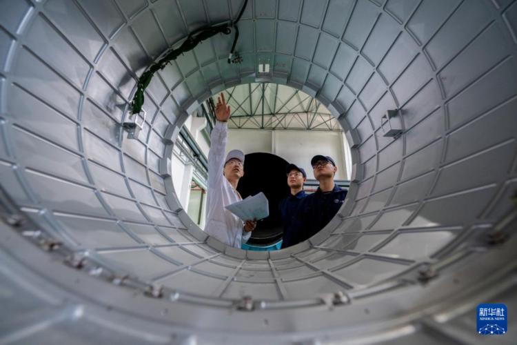 6月3日,航天科工火箭技術有限公司快舟火箭結構設計師劉家欣(左)與裝配人員討論火箭艙段裝配要點。今年29歲的劉家欣是航天科工火箭技術有限公司結構與地面設備研究室主任助理、主管設計師,參加過5次快舟火箭履約任務和多項型號設計優(yōu)化工作,其牽頭設計完成的快舟火箭新型復合材料星箭適配器已在多次快舟一號甲火箭發(fā)射履約任務中成功應用。
