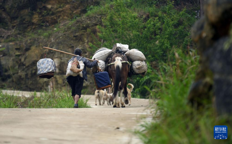 烏英屯村民潘忠慶趕著牲口上山干活(2024年4月12日攝)。