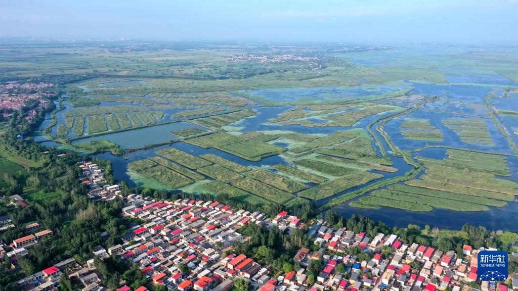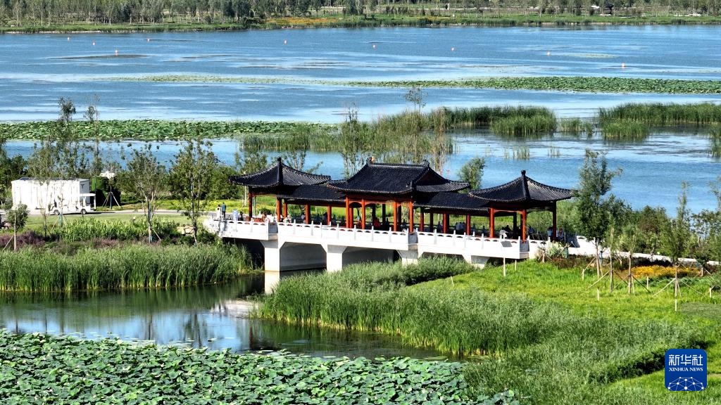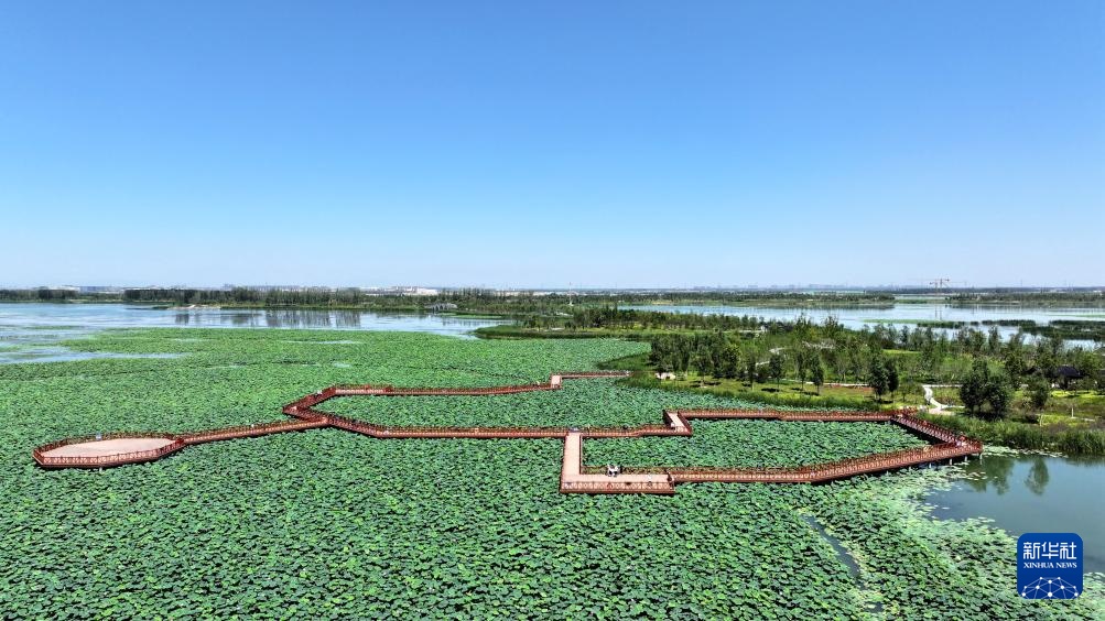 8月13日拍攝的雄安新區白洋淀唐河入淀口濕地(無人機照片)。