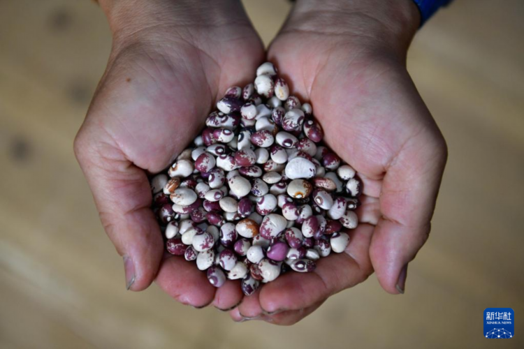 這是楊正熙在位于貴州省黎平縣尚重鎮洋洞村的種子博物館里保存的花豆種子(5月18日攝)。
