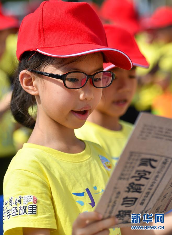 11月3日,陳村鎮石洲小學學生在2019首屆陳村三字經啟蒙文化周啟動儀式上誦讀《三字經》。新華社記者 劉大偉 攝