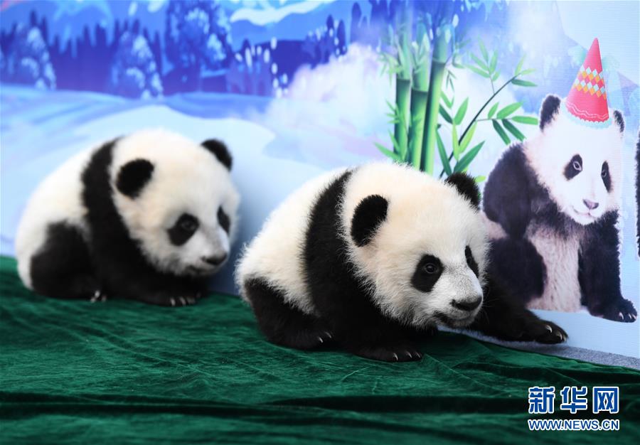 11月11日,三只新生秦嶺大熊貓在陜西省林業科學院秦嶺大熊貓繁育研究中心亮相。 當日,2019年7、8月份新生的三只秦嶺大熊貓幼崽在陜西省林業科學院秦嶺大熊貓繁育研究中心亮相自己的“百日宴”,它們體重已經分別達到5200克、5120克和4898克,生長發育良好。它們的征名結果也于當日“官宣”。大熊貓樓生的寶寶名字為“秦酷兒”,大熊貓珠珠的龍鳳胎寶寶名字分別為“佳佳”“園園”。 今年三只秦嶺大熊貓的誕生,標志著陜西全面掌握了大熊貓人工繁殖技術,秦嶺大熊貓繁育工作進入了新的階段。截至目前,陜西省林業科學院秦嶺大熊貓繁育研究中心共繁育成活大熊貓18胎20仔,飼養大熊貓26只,擁有全球唯一的圈養棕色大熊貓。 新華社記者 李一博 攝