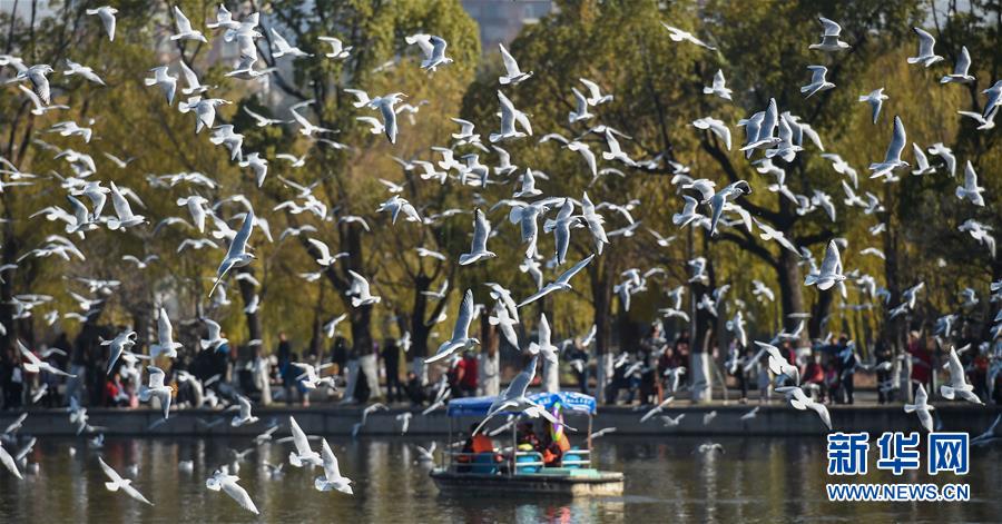 12月19日,人們在昆明翠湖公園觀賞、投喂紅嘴鷗。 近日,“春城”昆明陽光明媚,氣候宜人,市民游客紛紛來到海埂大壩、翠湖公園等地,與前來越冬的紅嘴鷗近距離接觸,人鷗同樂。紅嘴鷗是云南昆明的“榮譽市民”,每年秋冬季都會來到昆明越冬。 新華社記者 藺以光 攝