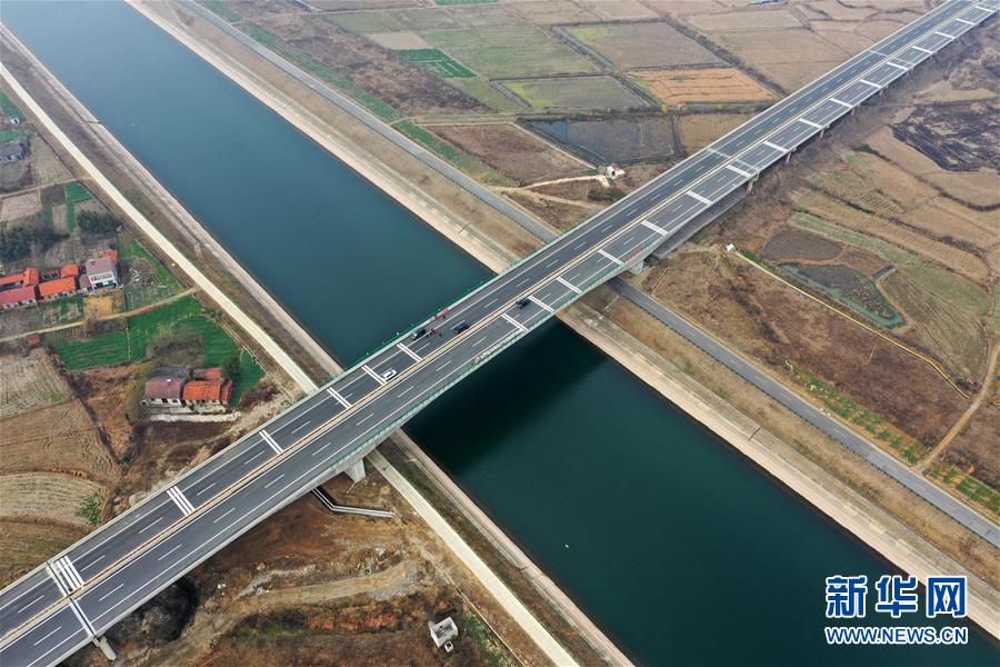 這是跨越南水北調配套工程的棗潛高速江漢運河特大橋(12月20日無人機拍攝)。
