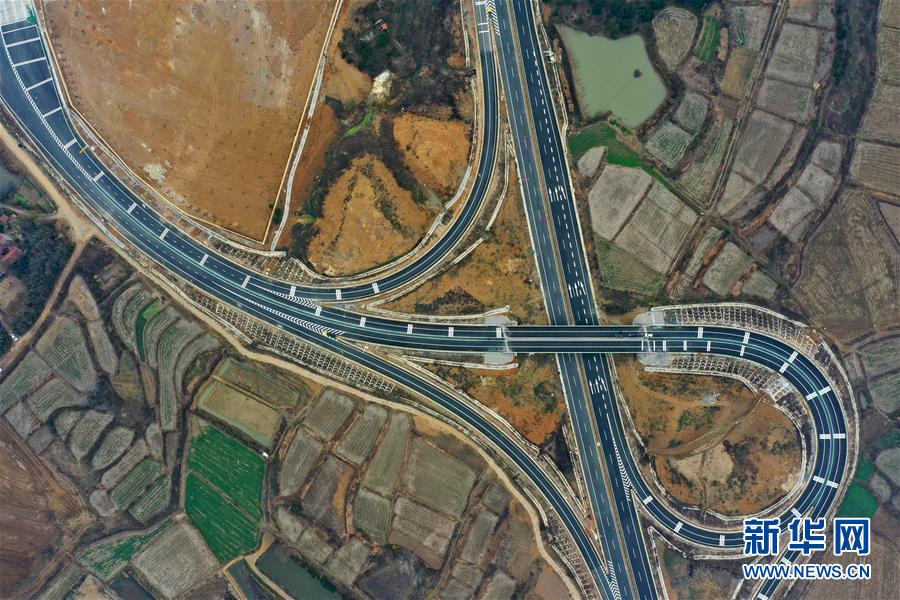 這是棗潛高速沙洋互通(12月20日無人機(jī)拍攝)。新華社記者 金良快 攝