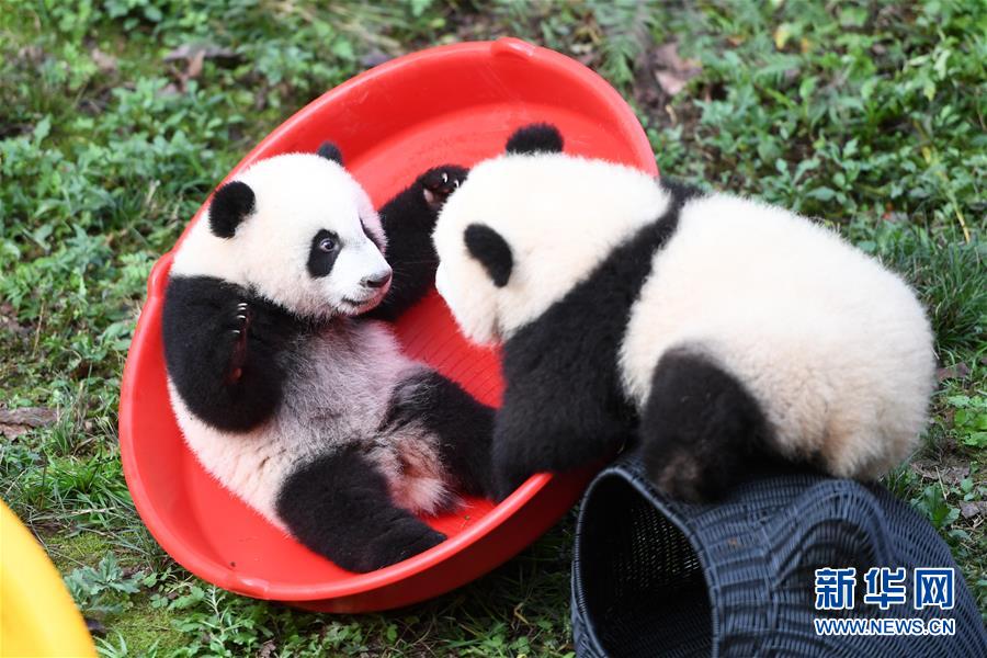 重慶:4只半歲大熊貓戶外慶祝半歲生日