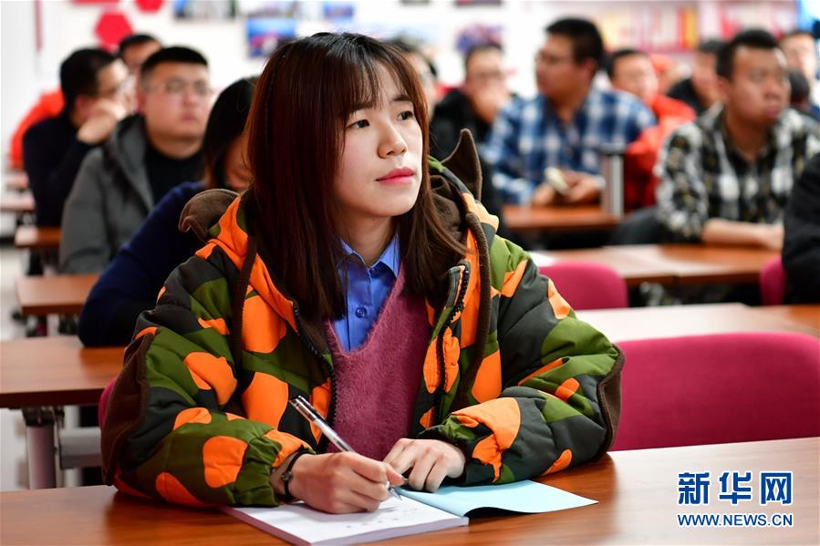 1月14日,謝曉靜在陽高南高鐵綜合車間組織的培訓班上聽課。新華社記者 曹陽 攝