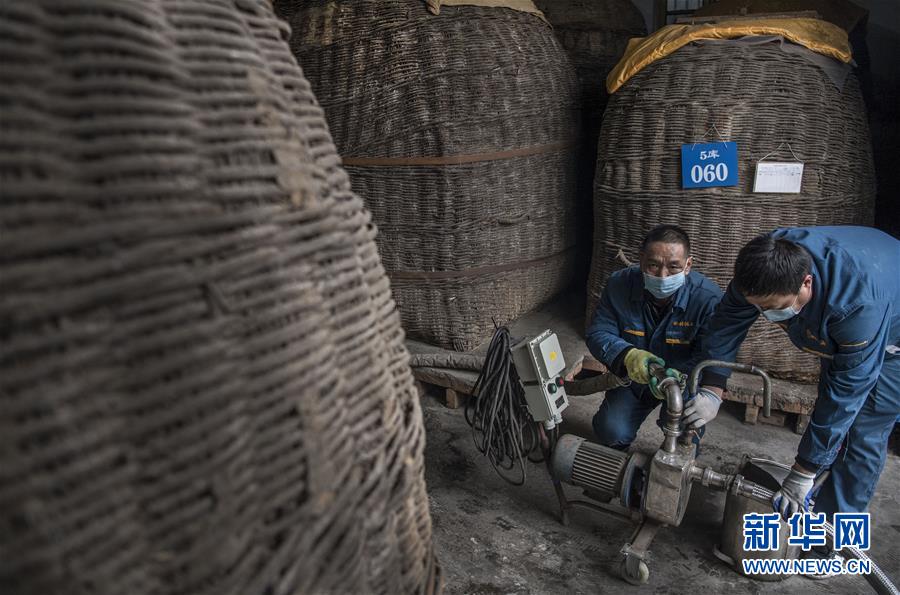2月27日,陜西柳林酒業(yè)集團有限公司的員工在基酒貯存庫轉(zhuǎn)運原漿酒。 近期,陜西寶雞市鳳翔縣的釀酒企業(yè)在做好疫情防控的同時,調(diào)配人員,有序組織復(fù)工復(fù)產(chǎn)。 新華社記者 陶明 攝