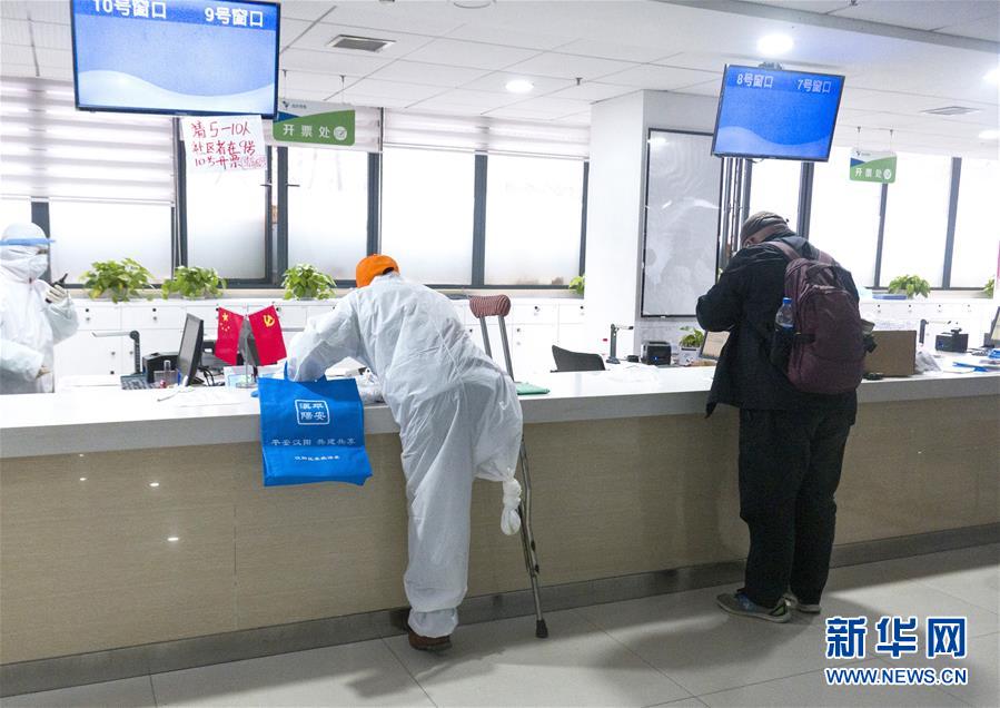 2月27日,在武漢市漢口大藥房黃石路店,于國橋(左)與江岸區后湖街道惠民苑社區網格員豐楓在遞交患者病歷,供工作人員審核。新華社記者 才揚 攝