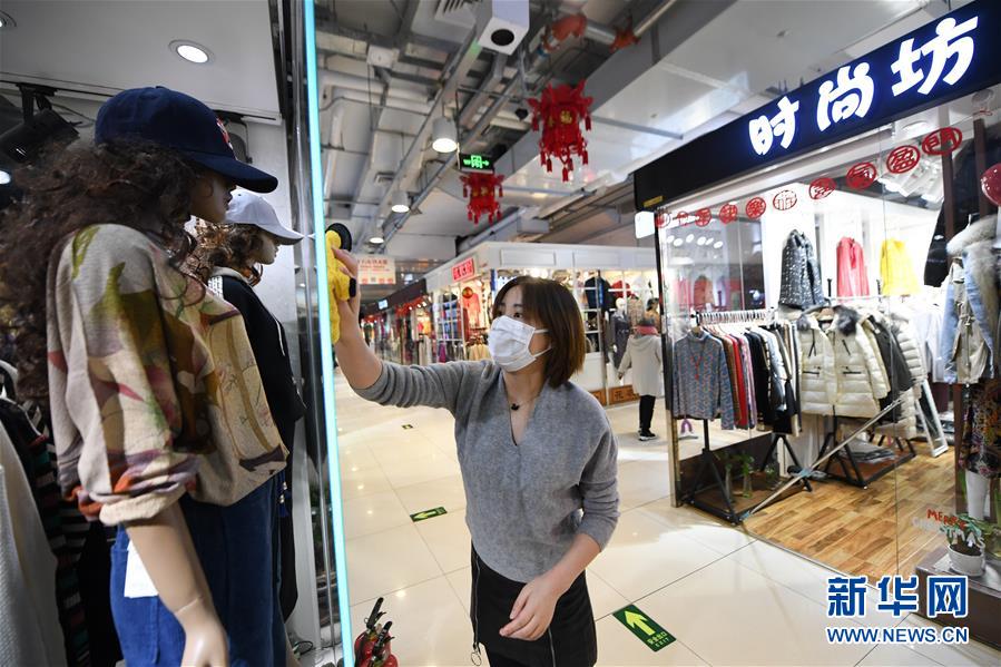 3月1日,秀水街商廈內的商戶在做清潔工作。 當日,北京秀水街開市。據介紹,為應對新冠肺炎疫情,秀水街商廈營業時間調整為10:00至19:00,所有顧客、員工、商戶、導購進入市場均需佩戴口罩,掃碼填寫個人相關信息,并配合測量登記體溫。秀水街商廈也將對公共區域定時進行消毒,并控制進入市場的人數。 新華社記者 鞠煥宗 攝