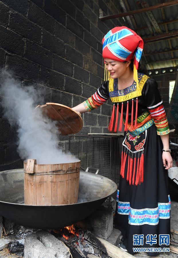 3月25日,在廣西上林縣巷賢鎮,一名壯族女子在蒸制五色糯米飯。 每年“壯族三月三”到來之際,廣西的壯族同胞都有蒸制五色糯米飯迎接節日的習俗,以祈禱五谷豐登,五福臨門。這些五色糯米飯,主要采用天然植物萃取色素,將糯米分別浸泡到紫、黃、紅、黑4種不同植物色素的水里,充分染色后,與原色糯米一起蒸熟而成。色澤鮮艷、清香誘人的五色糯米飯,是“壯族三月三”接待來客時必不可少的傳統美食。 新華社記者 陸波岸 攝