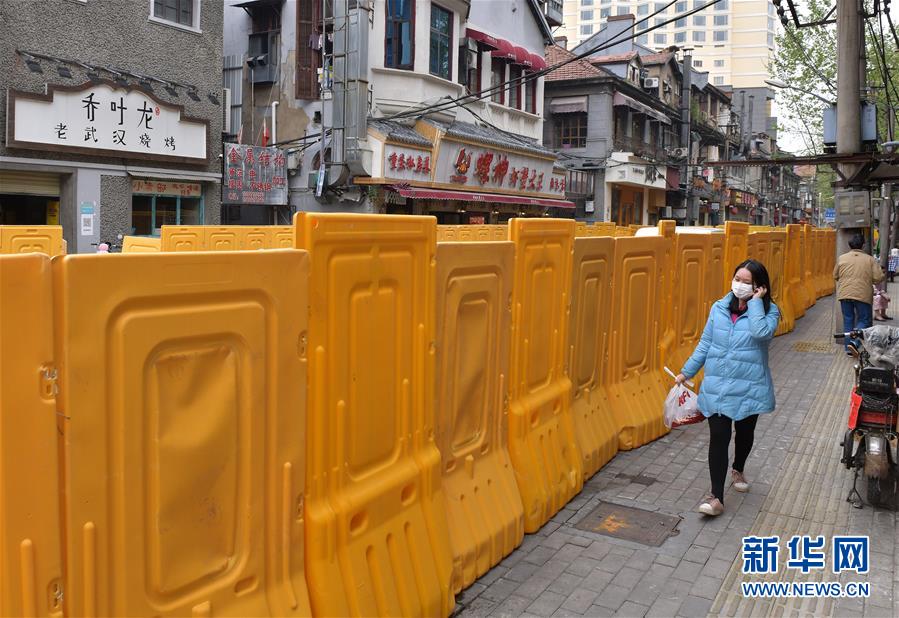 4月5日,外出購(gòu)物的居民走在蔡鍔路旁的封閉區(qū)內(nèi)。 近日,結(jié)合疫情防控工作實(shí)際,武漢市將繼續(xù)強(qiáng)化小區(qū)封閉管理,引導(dǎo)居民非必要出行盡量不出門,堅(jiān)決切斷傳染源、阻隔傳播途徑。 新華社記者 李賀 攝