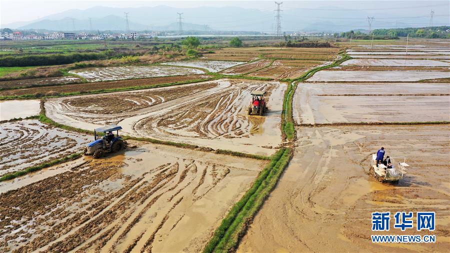 4月4日,南昌市新建區(qū)石埠鎮(zhèn)農(nóng)民在田里翻耕播種(無人機(jī)照片)。 清明時節(jié),江西省南昌市新建區(qū)各鄉(xiāng)鎮(zhèn)農(nóng)民搶抓晴好天氣,翻耕、播撒早稻種,加速進(jìn)行春播工作。 新華社記者 彭昭之 攝