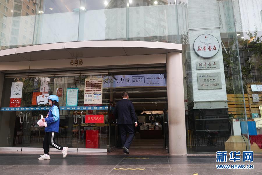 4月22日,外賣員走出新華書店,準(zhǔn)備配送書籍。 近日,位于上海市福州路的新華書店在落實(shí)好疫情防控措施的基礎(chǔ)上恢復(fù)營(yíng)業(yè)。為滿足讀者在家閱讀紙質(zhì)書的消費(fèi)需求,多家書店入駐餓了么外賣平臺(tái),開通外賣業(yè)務(wù),為不方便到實(shí)體店購(gòu)買的讀者提供新的購(gòu)書渠道。 新華社記者 丁汀 攝