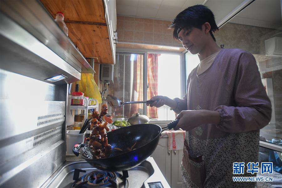 易俊豐在出租房里制作紅燒肉(4月23日攝)。 新華社記者 陳澤國 攝 |