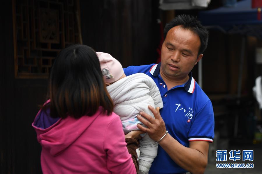 施六金(右)從妻子手中接過兒子施澤恩(4月25日攝)。1973年出生于十八洞村的施六金,由于父親患病很早就放棄學(xué)業(yè)和母親扛起了家庭的重?fù)?dān)。為了生活,他還曾遠(yuǎn)去東南亞打工。2015年,看到家鄉(xiāng)的變化,施六金回到村里開起了農(nóng)家樂,年度家庭人均純收入也從2014年的1715元增長到了2019年的35696元。2018年,施六金與心愛的人組建了家庭。今年初,施六金與愛人迎來了一個(gè)大胖小子。“做人做事要懂得回報(bào)和感恩。”施六金給剛出生的兒子取名施澤恩。新華社記者 薛宇舸 攝 |