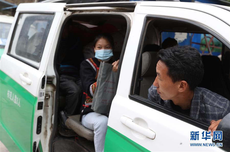5月12日,在四川省昭覺縣阿土列爾村,莫色雄體(右)坐上車準備前往昭覺縣易地扶貧搬遷縣城集中安置點的新家。新華社記者 江宏景 攝