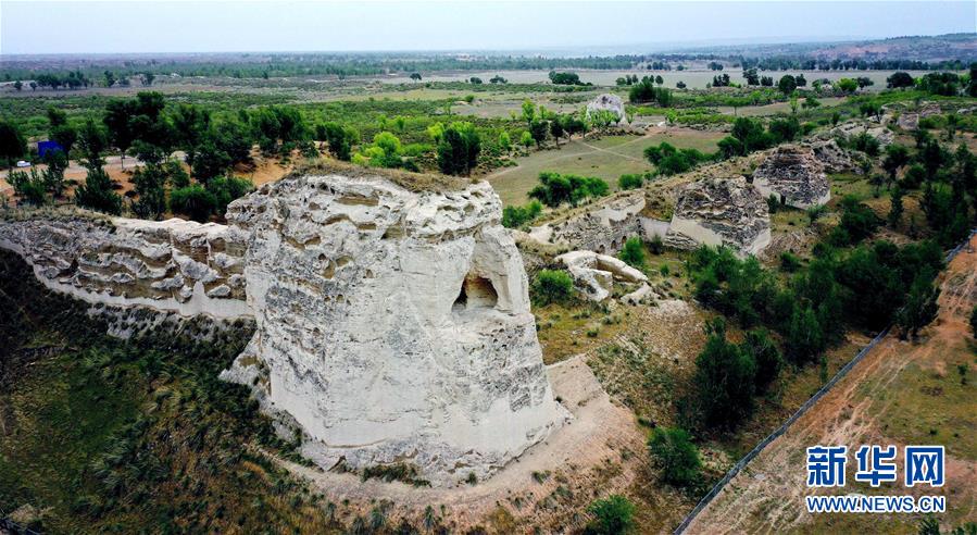 統萬城保留最完整的一段城墻遺址(5月30日攝,無人機照片)。