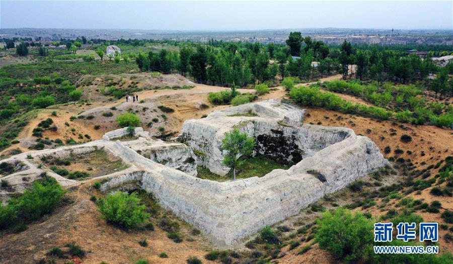 統萬城保留最完整的一段城墻遺址(5月30日攝,無人機照片)。 統萬城位于陜西省靖邊縣境內,是1600年前十六國時期匈奴首領赫連勃勃建立的大夏政權的都城,北宋初年被毀后,遂淹沒于歷史的塵埃之中,是匈奴遺留下的一座都城遺址。 統萬城北接浩瀚的毛烏素沙漠,千余年來,隨著惡劣生態環境的影響,曾經的城池遺存遭到風雨流沙侵蝕,一度掩埋于沙漠之下。如今,隨著當地幾代人大力治沙,生態環境得以明顯改善,統萬城遺址也隨之變成綠意盎然的“大漠名勝”。 新華社記者 劉瀟 攝