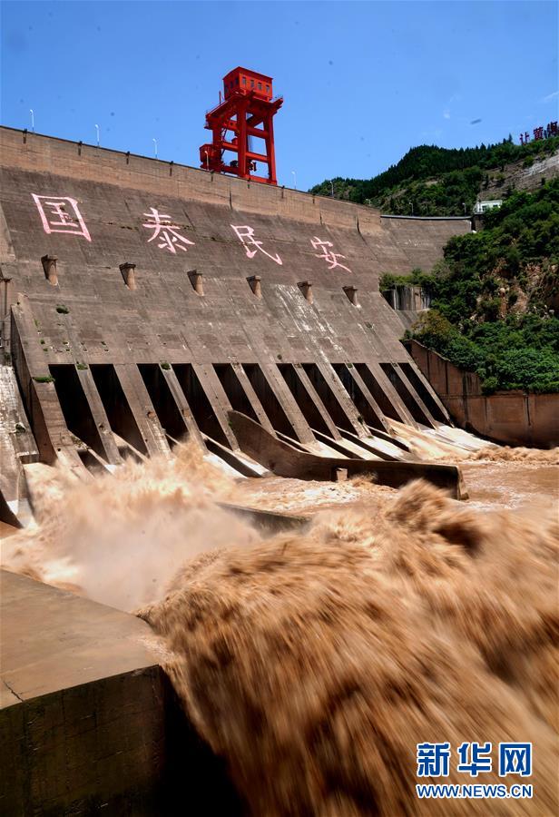這是7月15日拍攝的進入汛期防洪運用的三門峽水利樞紐。 經過前期的騰庫迎汛措施,目前,三門峽水庫降至汛限水位以下,留足防洪庫容迎接黃河防汛關鍵期。 新華社記者 李安 攝