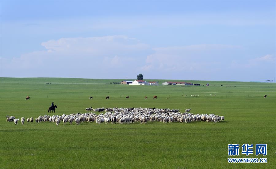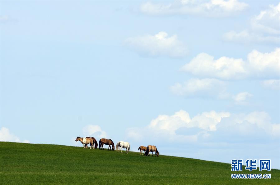 內(nèi)蒙古錫林郭勒盟西烏珠穆沁旗白馬繁育基地的草原景色(6月28日攝)。 夏日,內(nèi)蒙古廣袤的大草原碧草連天,美景如畫。 新華社記者 賈立君 攝