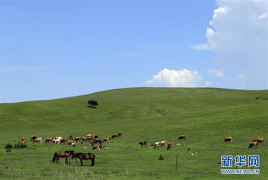 內(nèi)蒙古興安盟科爾沁右翼前旗境內(nèi)的草原景色(7月5日攝)。 夏日,內(nèi)蒙古廣袤的大草原碧草連天,美景如畫。 新華社記者 賈立君 攝