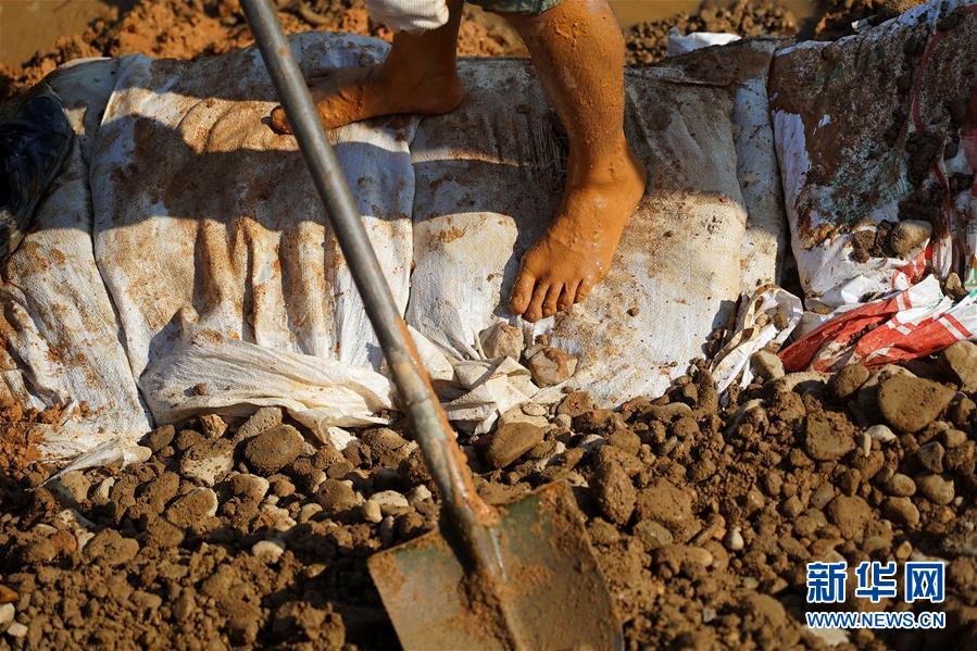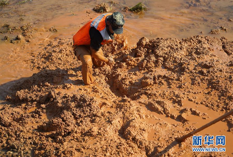武警江西總隊上饒支隊的戰(zhàn)士在泥水中開挖導(dǎo)滲溝(7月14日攝)。 開挖導(dǎo)滲溝、填埋沙石、疏通排水渠、壘填沙袋,汗水劃過臉頰,浸濕軍裝。在位于江西省余干縣古埠鎮(zhèn)的齊埠聯(lián)圩上,武警江西總隊上饒支隊的60名戰(zhàn)士頭頂烈日,揮汗如雨,在泥水中處置一處堤壩坍塌險情。在這群平均年齡只有21歲的年輕戰(zhàn)士中,最小的只有18歲,其中“00”后戰(zhàn)士就有27人。在汗水與泥水的交織中,記者用鏡頭記錄下這些最可愛的身影。 新華社記者 萬象 攝