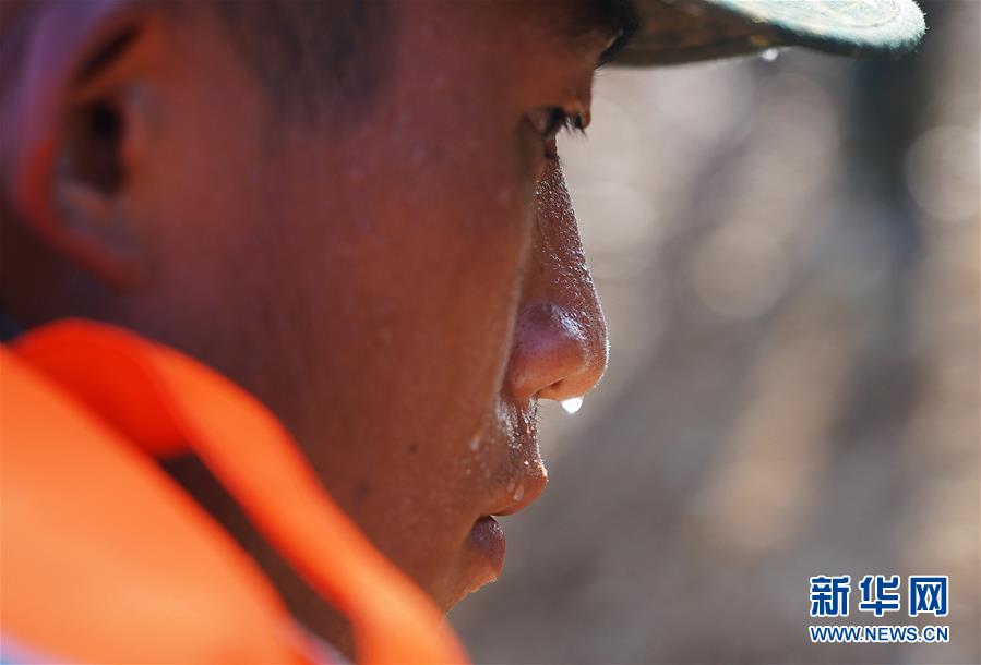 武警江西總隊上饒支隊的一名戰士臉上流下的汗水(7月14日攝)。 開挖導滲溝、填埋沙石、疏通排水渠、壘填沙袋,汗水劃過臉頰,浸濕軍裝。在位于江西省余干縣古埠鎮的齊埠聯圩上,武警江西總隊上饒支隊的60名戰士頭頂烈日,揮汗如雨,在泥水中處置一處堤壩坍塌險情。在這群平均年齡只有21歲的年輕戰士中,最小的只有18歲,其中“00”后戰士就有27人。在汗水與泥水的交織中,記者用鏡頭記錄下這些最可愛的身影。 新華社記者 萬象 攝