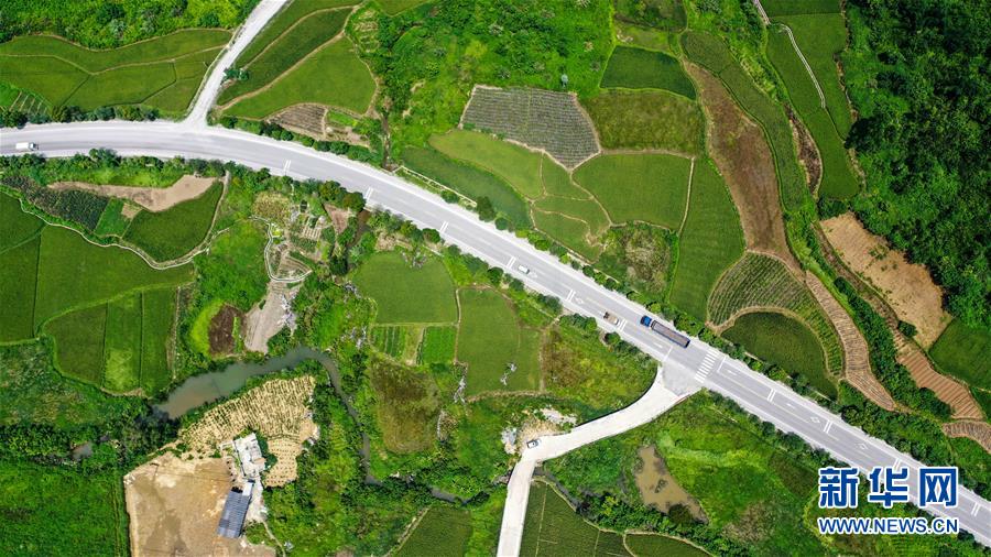 融安縣浮石鎮泉頭村的田園景色(7月15日攝,無人機照片)。 夏日時節,廣西柳州市融安縣阡陌縱橫的田園綠意盎然,處處充滿生機和活力。 新華社記者張愛林攝