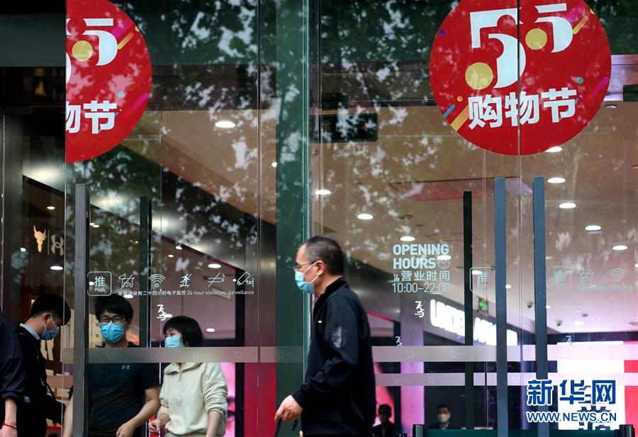 這是上海淮海路一家商場的“五五購物節(jié)”標識(5月5日攝)。5月4日晚,上海首次啟動大規(guī)模商業(yè)促銷活動“五五購物節(jié)”,多家在線新經濟企業(yè)參與。 新華社記者 劉穎 攝 主要指標恢復性增長,經濟大盤依然穩(wěn)固有韌性—— 上半年,經濟先降后升,6月全國城鎮(zhèn)調查失業(yè)率為5.7%,連續(xù)兩個月小幅下降;居民消費價格漲勢溫和,上半年3.8%的漲幅比一季度回落1.1個百分點;外匯儲備超過3.1萬億美元,國際收支平穩(wěn)。 內需持續(xù)回暖,生產加快復蘇,新興動能增強—— 二季度,社會消費品零售總額降幅比一季度收窄15.1個百分點,“618”大促多平臺網絡購物累計成交超萬億元;制造業(yè)PMI連續(xù)4個月站上榮枯線;低風險地區(qū)電影院將于7月20日有序恢復營業(yè);居家辦公、在線教育等新業(yè)態(tài)快速擴張……