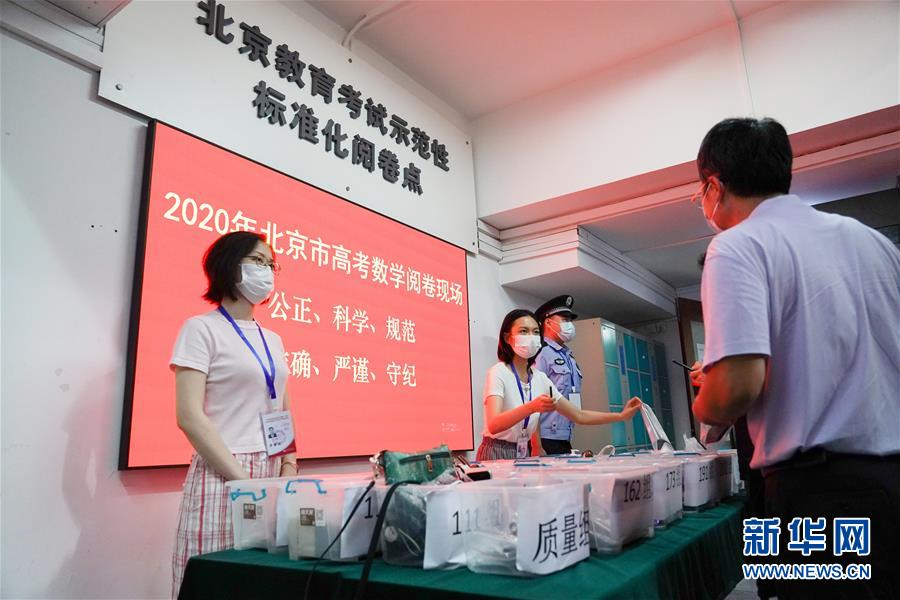 7月16日,在位于清華大學(xué)的高考數(shù)學(xué)評卷點(diǎn)外,工作人員在寄存進(jìn)入評卷點(diǎn)人員的手機(jī)等隨身物品。 當(dāng)日,北京市舉行2020年高考評卷工作媒體開放日。據(jù)介紹,北京市2020年高考評卷工作已于7月9日開始,預(yù)計(jì)24日結(jié)束。北京市共組織1290名教師,在北京大學(xué)、清華大學(xué)等六個(gè)評卷點(diǎn)對近35萬份答卷進(jìn)行評閱。考試成績將于7月25日12時(shí)發(fā)布。 新華社記者 鞠煥宗 攝