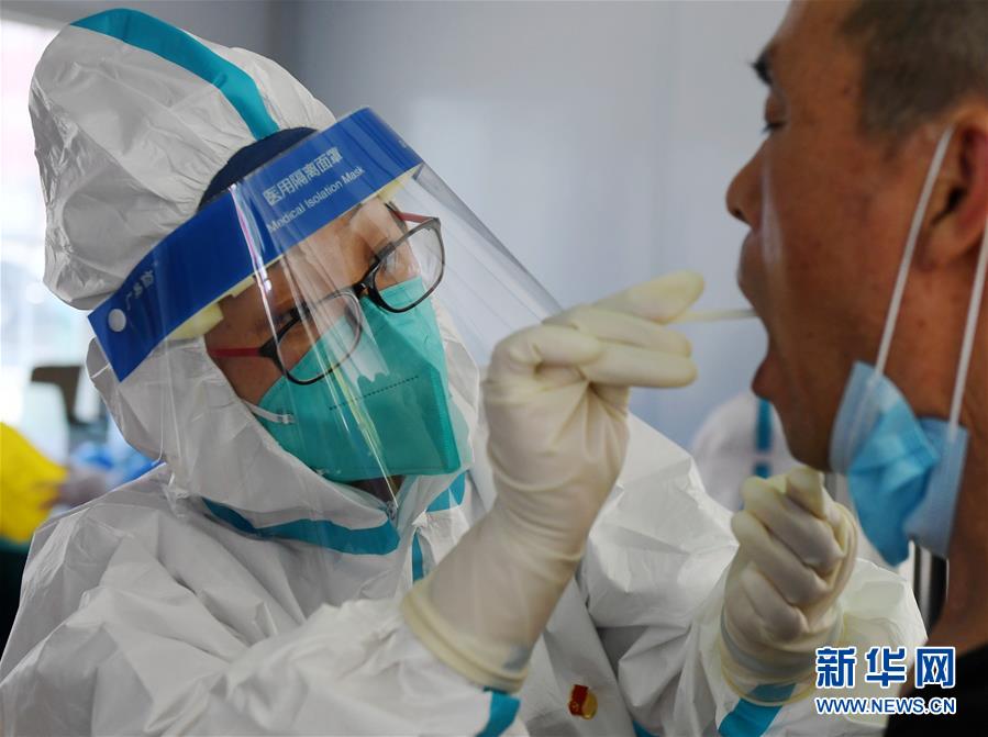 社區(qū)衛(wèi)生服務(wù)站工作人員在北京市通州區(qū)梨園鎮(zhèn)公莊小區(qū)附近的集中采樣點(diǎn)進(jìn)行核酸檢測(cè)采樣(6月22日攝)。新華社記者 張晨霖 攝 “此次疫情目前確診的335例病例中,‘從密接者中發(fā)現(xiàn)’和‘主動(dòng)核酸篩查’兩種主動(dòng)方式發(fā)現(xiàn)病例占比為75%,將病例發(fā)現(xiàn)平均提前了3至5天?!北本┦懈笔虚L、北京新冠肺炎疫情防控工作領(lǐng)導(dǎo)小組辦公室主任盧彥說。