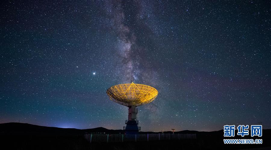 這是7月19日在明安圖觀測基地拍攝的星空。 7月18日晚至19日凌晨,在位于內蒙古錫林郭勒盟正鑲白旗境內的國家天文臺明安圖觀測基地,尼歐懷茲彗星劃過天際。在明安圖觀測基地內,排列著100面白色的拋物面天線。這個龐大的天線陣列便是草原“天眼”——明安圖射電頻譜日像儀。草原“天眼”持續接收太陽射電輻射,然后由科研人員進行數據分析研究,對空間環境監測、太陽活動預報均有重要作用。 新華社記者 連振 攝