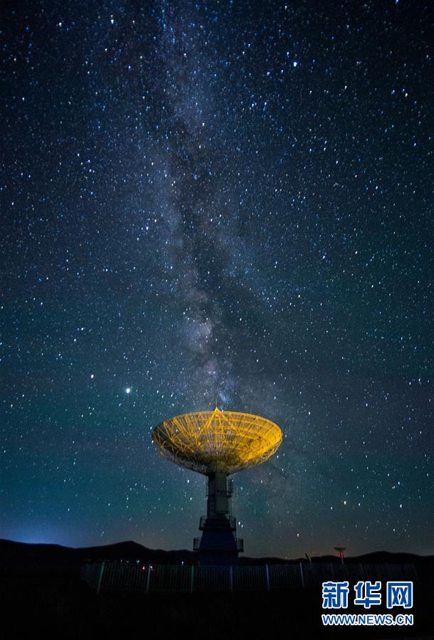 這是7月19日在明安圖觀測基地拍攝的星空。 7月18日晚至19日凌晨,在位于內蒙古錫林郭勒盟正鑲白旗境內的國家天文臺明安圖觀測基地,尼歐懷茲彗星劃過天際。在明安圖觀測基地內,排列著100面白色的拋物面天線。這個龐大的天線陣列便是草原“天眼”——明安圖射電頻譜日像儀。草原“天眼”持續接收太陽射電輻射,然后由科研人員進行數據分析研究,對空間環境監測、太陽活動預報均有重要作用。 新華社記者 連振 攝