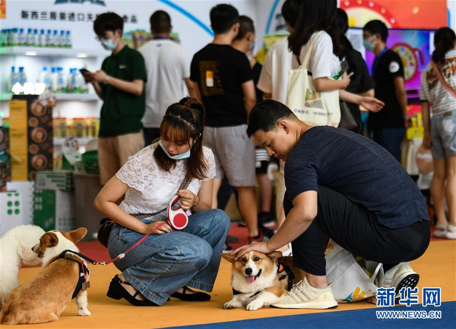 7月19日,在成都世紀城新國際會展中心,消費者和寵物狗玩耍。 當日,第九屆成都國際寵博會進入最后一天。此次展會展出面積30000平方米,匯聚國內外品牌企業和產品,覆蓋中西部地區寵物行業食品、用品、醫療和服務等領域。 新華社記者 王曦 攝