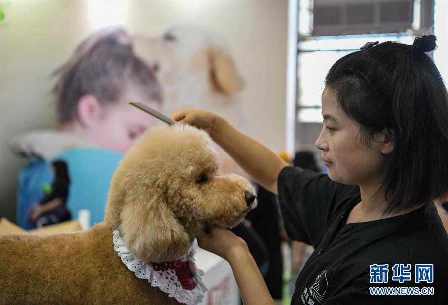7月19日,在成都世紀城新國際會展中心,一家寵物美容學校的工作人員演示給寵物犬梳毛。 當日,第九屆成都國際寵博會進入最后一天。此次展會展出面積30000平方米,匯聚國內外品牌企業和產品,覆蓋中西部地區寵物行業食品、用品、醫療和服務等領域。 新華社記者 王曦 攝