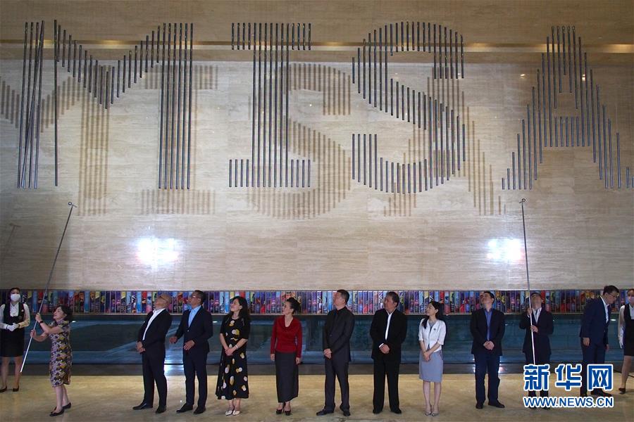 7月20日,嘉賓在開幕式現場敲響上海夏季音樂節裝置作品《風鈴》。 當晚,為期10天的2020上海夏季音樂節開幕。開幕音樂會上,余隆執棒上海交響樂團演繹西貝柳斯的《圖翁內拉的天鵝》《憂郁圓舞曲》和斯特拉文斯基《火鳥》組曲,并攜手龔琳娜帶來老鑼的歌曲《靜夜思》《山鬼》。 新華社記者 任瓏 攝