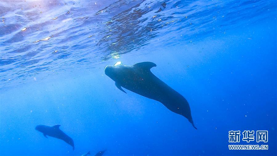 這是7月20日在南海某海域拍攝的短肢領(lǐng)航鯨。 新華社記者 張麗蕓 攝