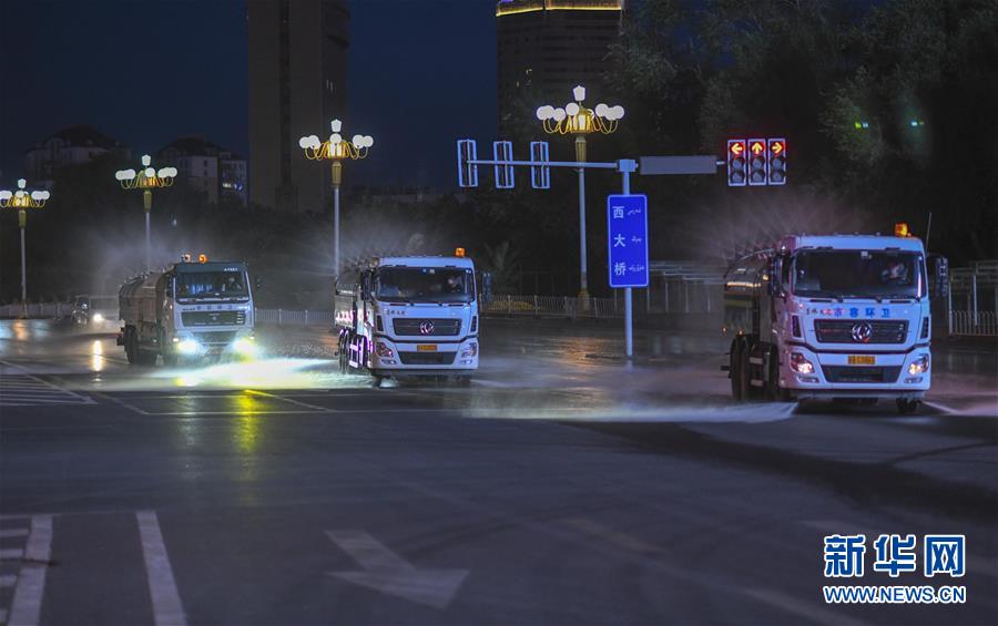 7月20日,烏魯木齊市天山區(qū)城管局清運隊的工作車輛在市區(qū)光明路進行消殺作業(yè)。 烏魯木齊市天山區(qū)城管局自7月17日起,對天山區(qū)的主次干道76條及235條巷道進行集中消殺。目前,烏魯木齊市對重點區(qū)域進行全面消毒消殺。 新華社記者 趙戈 攝