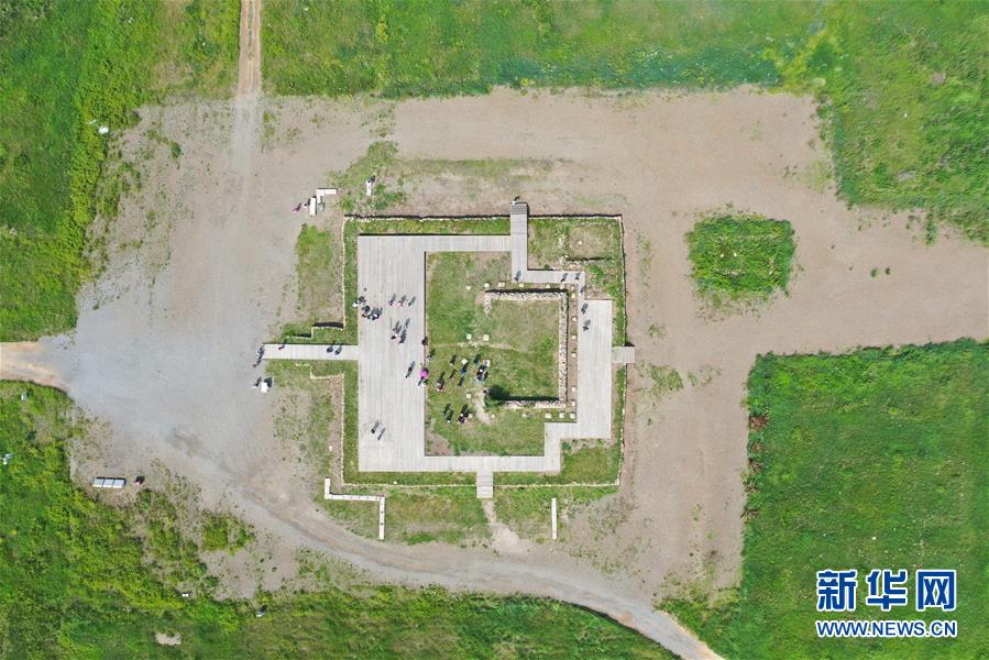 7月22日,游客在元上都遺址參觀(無人機照片)。 元上都遺址位于內蒙古自治區錫林郭勒盟正藍旗,包括整體格局清晰、保存較為完好的上都城、防洪渠、墓葬群等,與周邊的濕地、草原等自然景觀和蒙古包、敖包等人文景觀相互配合。2012年,元上都遺址被列入《世界遺產名錄》。 新華社記者 徐欽 攝
