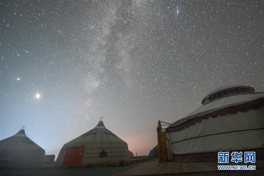 這是7月23日凌晨在元上都遺址拍攝的星空和蒙古包。 元上都遺址位于內蒙古自治區錫林郭勒盟正藍旗,包括整體格局清晰、保存較為完好的上都城、防洪渠、墓葬群等,與周邊的濕地、草原等自然景觀和蒙古包、敖包等人文景觀相互配合。2012年,元上都遺址被列入《世界遺產名錄》。 新華社記者 劉磊 攝
