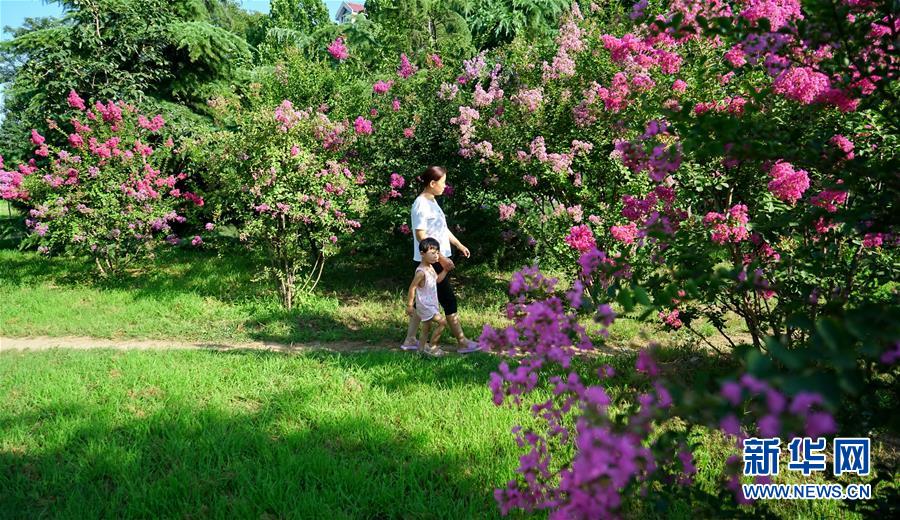 7月26日,村民在欒卸村一處花園游玩。 盛夏,位于太行山區的河北省沙河市欒卸村滿目蔥蘢,山水、田園、民居構成一幅美麗鄉村圖景。 新華社記者 牟宇 攝