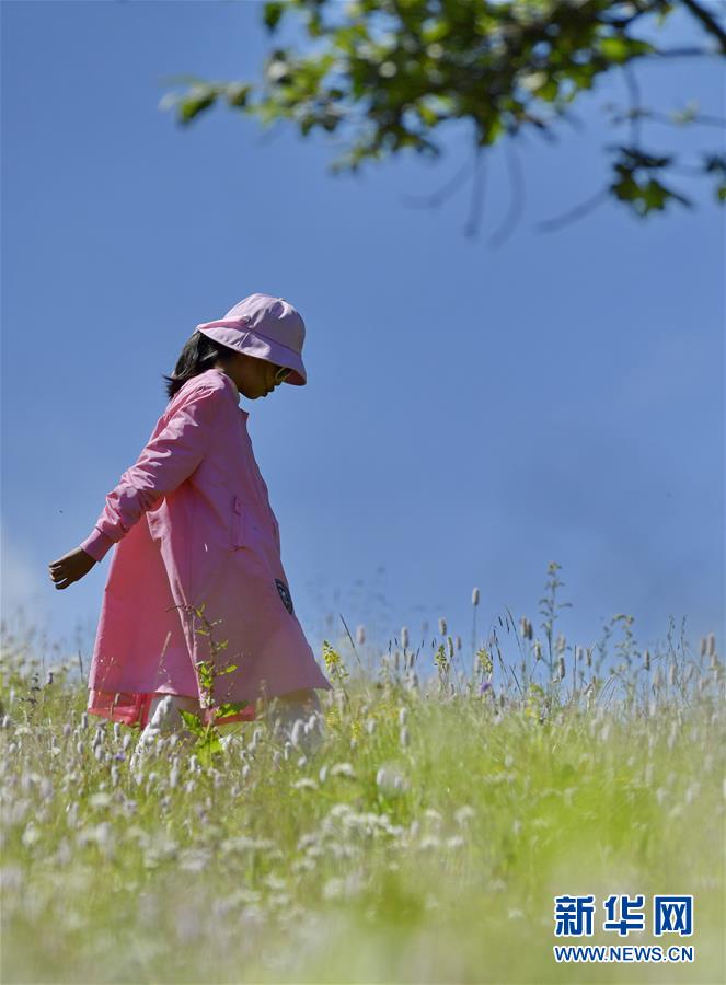 一名游客在魯朗旅游小鎮的高山牧場游玩(7月26日攝)。 新華社記者 張汝鋒 攝